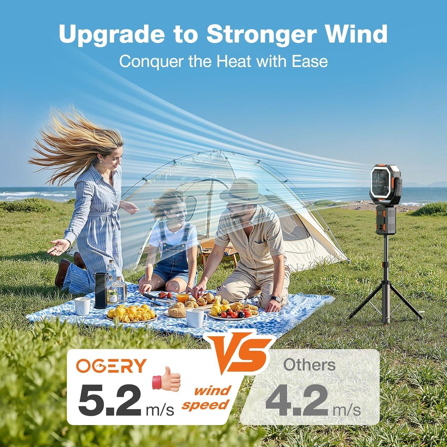 Powerful Wind with Stepless Speed Contro: Advanced turbocharging and PWM deliver up to 5.3m/s wind speed. This oscillating fan with stepless speed adjustment serves as an electric fan, cooling fan, tent fan, floor fan, and quiet, small oscillating fan for dorm, bedroom,overlanding gear
