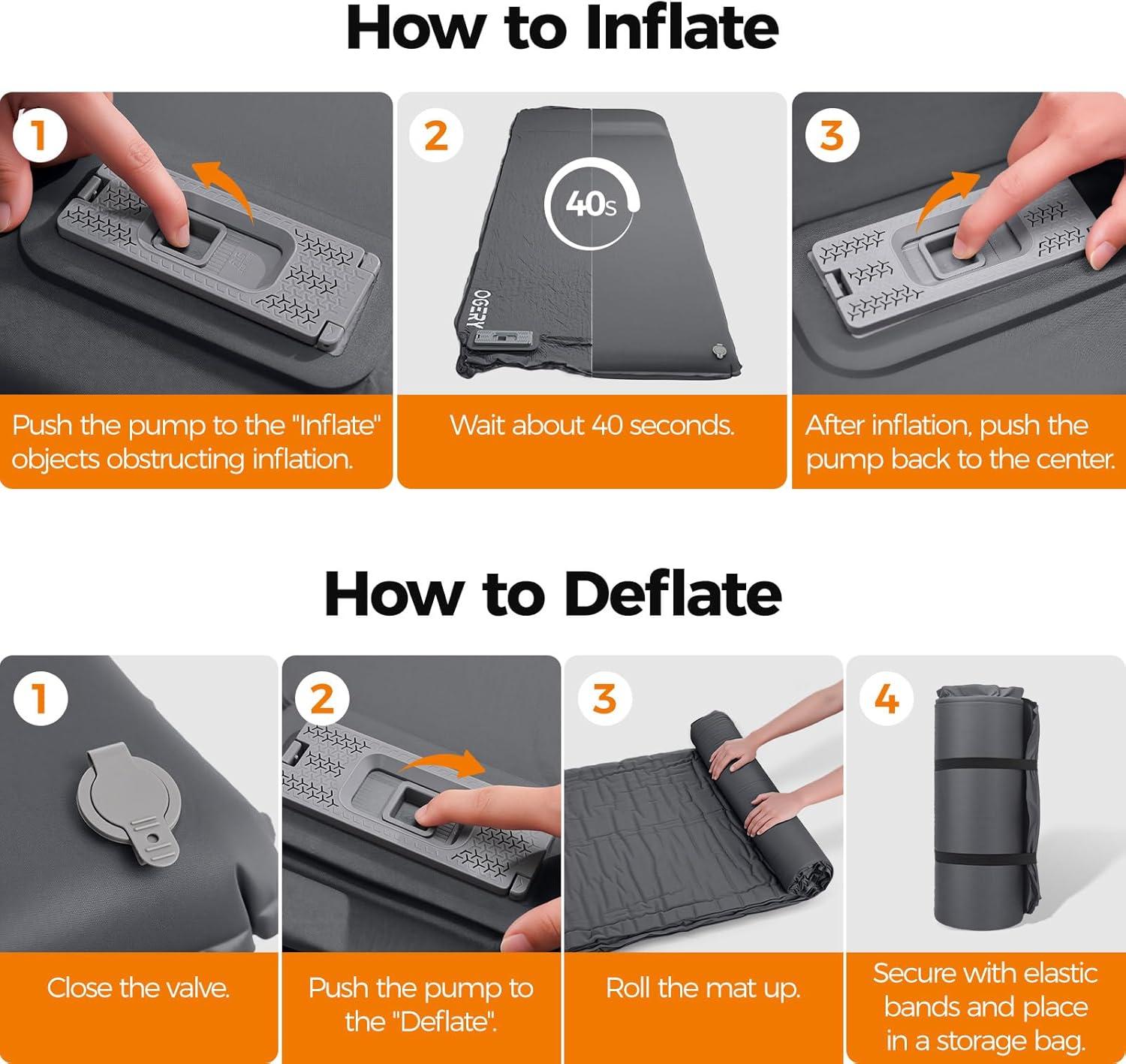 ONE-TOUCH INFLATION AND DEFLATION ☛ Ditch the hassle of extra pumps or manual blowing! Our built-in intelligent air pump camping sleeping pad lets you inflate your pad automatically with a single click—just watch it expand. Setup is fast, so you spend less time prepping and more time enjoying the outdoors.