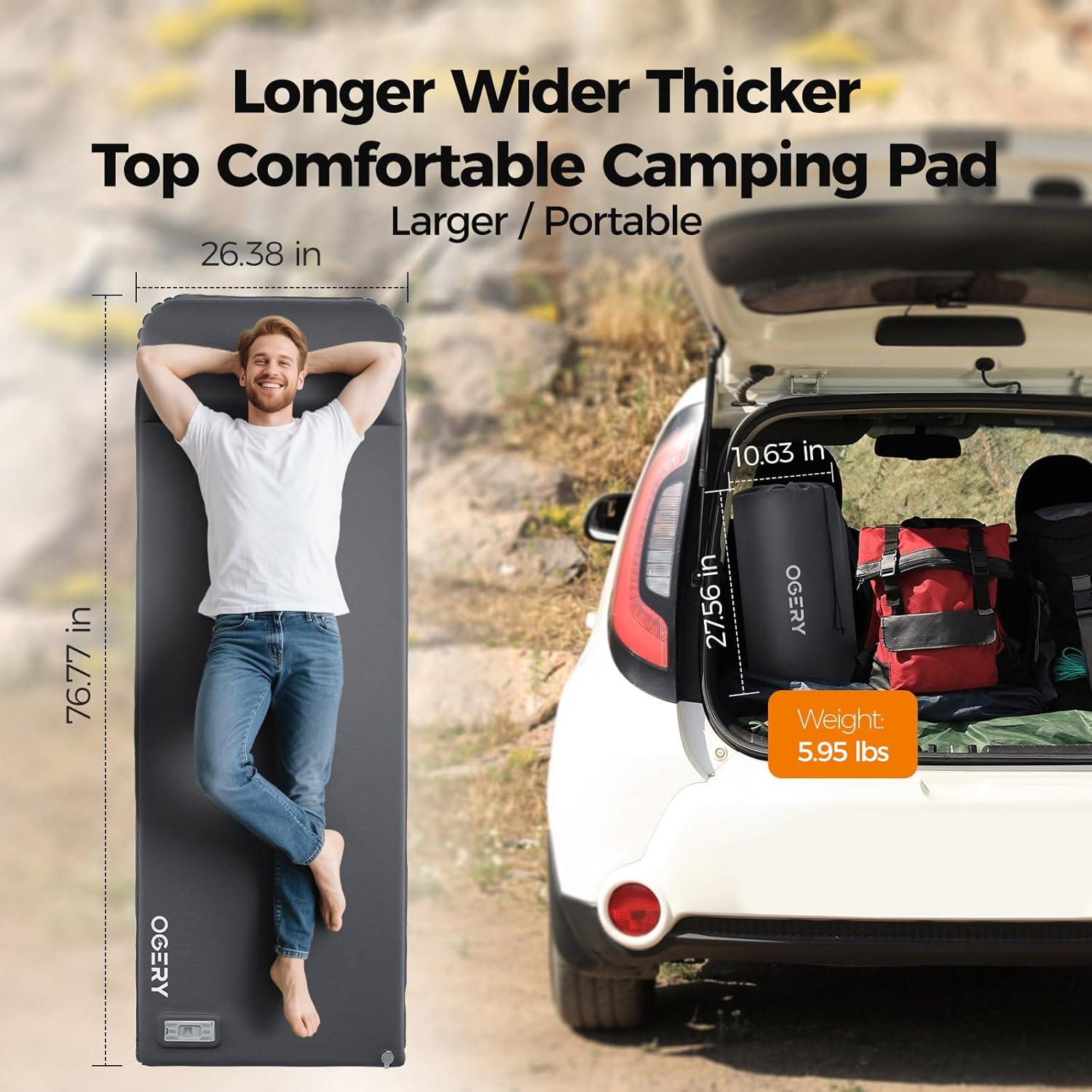Score big savings on OGERY Self Inflating Sleeping Pad with Electric Pump, 3.15" Ultra-Thick Memory Foam Camping Pad, 4 Season Camping Mattress Pad with Built-in Pillow, Camping Essentials Gear for Tent Travel Car(Grey) during our back-to-school sale. Limited quantities available.